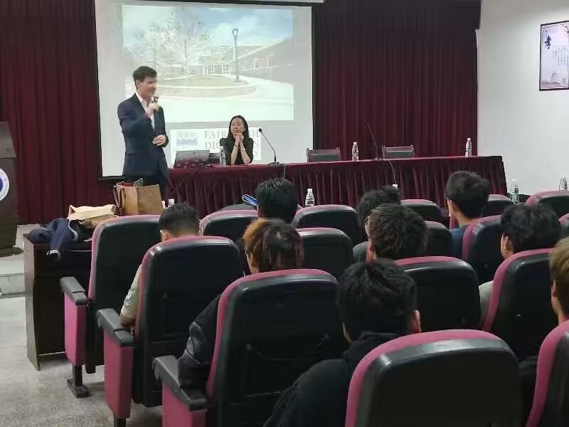 为促进太阳成集团tyc33455cc与美国菲迪大学中美合作办学项目的高素质人才培养,提升学生国际化视野,激励学生努力学习、奋发向上,进一步加深学生对出国留学的了解,合理规划学业就业,美国菲迪大学驻成都办公室主任Dan Plaut先生特于2023年5月11日来我校信息大楼报告厅宣讲交流。
