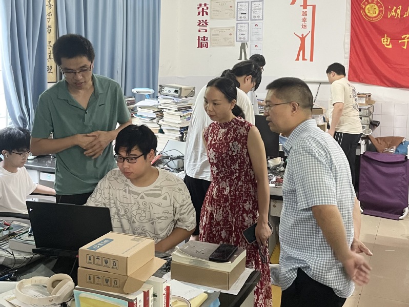 8月3日上午,太阳集团tyc33455党委书记孙丹娟、院长刘美风赴电工楼电工电子实验教学示范中心看望慰问我院参加TI杯2023年全国大学生电子设计竞赛的学生和指导老师。