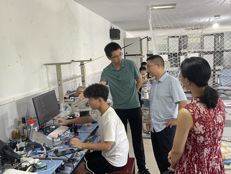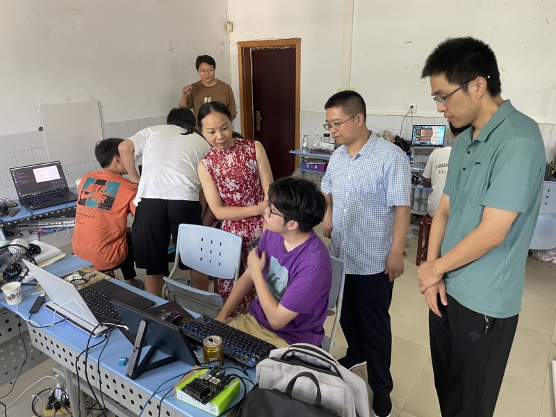 学院副院长、竞赛指导老师田开坤详细介绍了竞赛的出题情况、学生选题情况和学生作品制作进展。院领导与参赛学生们亲切交谈,询问参赛感受,鼓励大家团结合作、全力拼搏,并对学生的创新思路、勇于克服困难和坚韧的精神予以高度评价。