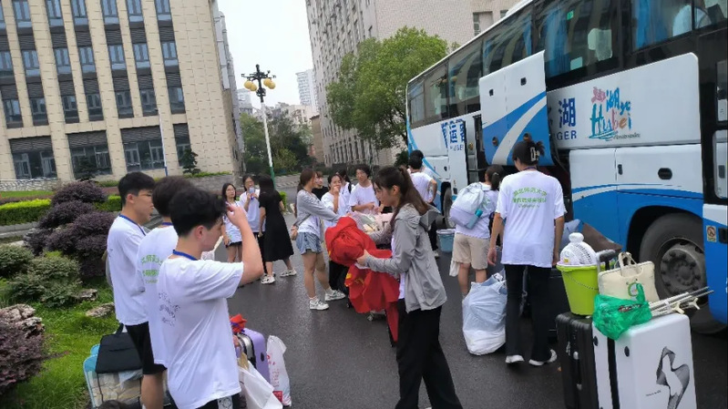 旭日东升,太阳集团tyc33455的支教队员们迎着清晨的第一缕阳光在太阳成集团tyc33455cc东大门集合。队员们满怀热情,整理物资,互相帮助搬运行李,完成出发前的准备工作。在学院党委副书记刘雅和辅导员田学泽的带领下,支教队员们陆续登上大巴车,准备启程。