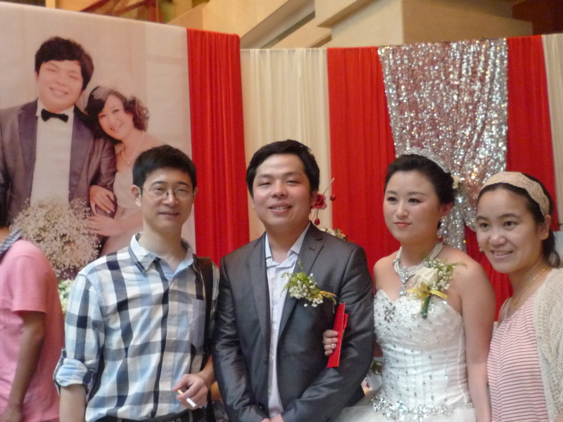 与喜结良缘的学生合影