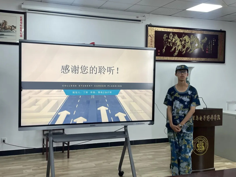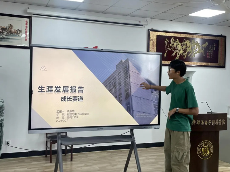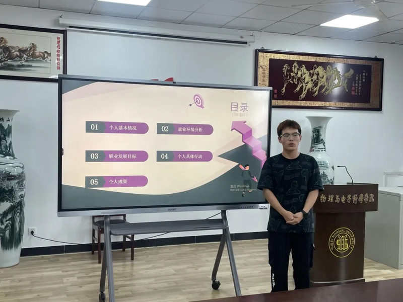 本次初赛选手均为2023级新生,参赛内容为成长赛道,即结合个人生涯发展报告展示PPT,阐述个人的职业规划。比赛分为主题陈述和评委提问两个环节,每位选手依次上前进行8分钟的主题陈述,随后进行5分钟的评委提问,选手现场应答。