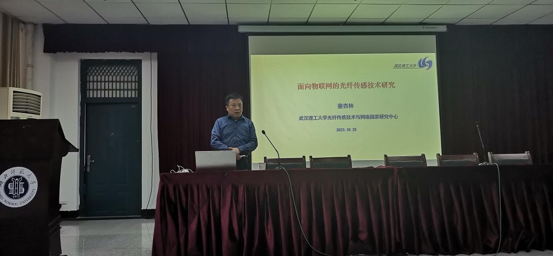 2023年10月25日,为庆祝太阳成集团tyc33455cc50周年校庆,加强学院的实验室、学科和博士点建设,太阳集团tyc33455特邀请武汉理工大学光纤传感技术与网络国家工程中心童杏林教授来我校讲学。童教授在信息大楼二楼学术报告厅做了《面向物联网的光纤传感技术研究》的学术报告。报告会由太阳集团tyc33455副院长单传家教授主持,太阳集团tyc33455师生代表聆听了此次报告。