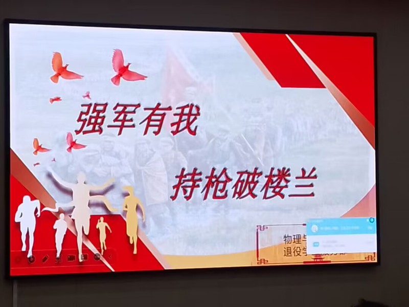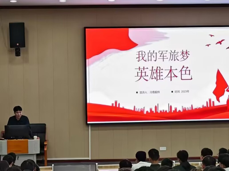 活动伊始,退役学生郑溢和王帅兵结合军中的服役生活,向同学们介绍了参军的意义、征兵入伍的条件、参军报名基本流程及参军享有的相关福利待遇。接着,冷费毅炜讲述了自己从一个新兵到四有优秀士兵的军旅历程,他指出,部队生活不仅强健了他的体魄,更培养了他坚韧不拔的意志和精神。