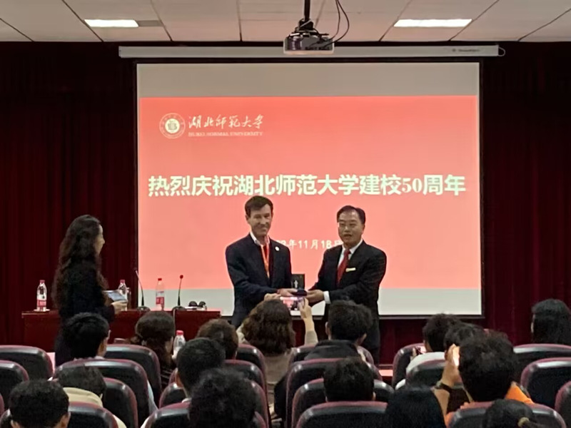 会上,Dan Plaut对我校建校50周年表示热烈祝贺,并代表菲迪大学对学校的热情接待表达了真诚的感谢,并向我校赠送了贺礼。肖六亿表示希望双方进一步加强合作,办好国际教育,增进了解,深化友谊,并代表我校向菲迪大学回赠了礼物,表达了我校对菲迪大学的感谢。