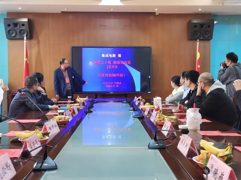 随后,80级校友武汉大学教授、博士生导师方国家为同学们传授经验,向同学们介绍了集成电路的发展史以及集成电路专业的相关知识,激发了大家对微电子及集成电路领域的探索热情。同时也希望各位校友心系母校,加强与母校的联系,为母校的发展贡献出自己的力量。