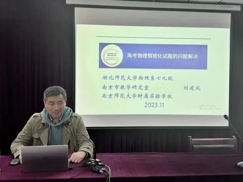 11月20日上午,南京师范大学附属实验学校副校长、我院1979级物理系校友刘建成回访母校,在信息大楼二楼报告厅开展“高考物理情境化试题的问题解决”专题讲座。本次讲座由学院党委副书记刘雅主持,学院相关专业本科生、研究生参加。