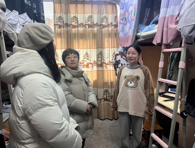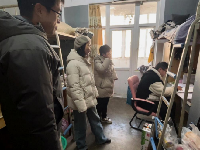 在慰问活动中,党委书记孙丹娟代表学院向同学们表达了深切的关心和祝福,她走进每间寝室,与同学们亲切交谈,“报考了哪个学校?”“复习的怎么样?”细心询问同学们的备考进度及生活状况,并提醒同学们在备考的同时,也要注意防寒保暖,合理安排作息时间。院长刘美风鼓励考研学子,要坚定信心、勇往直前,为自己的梦想而努力奋斗。党委副书记刘雅强调了积极心态的重要性,她叮嘱同学们在最后冲刺阶段要不畏艰难、持之以恒、凝心聚力、稳定情绪,以最佳的精神状态迎接考试。