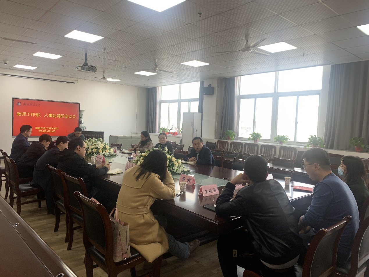 3月28日下午,校教师工作部、人事处、人才办公室负责人胡燕生一行来我院调研指导人事人才工作。学院领导班子成员、系主任、教研室主任及骨干教师代表参加调研座谈会。