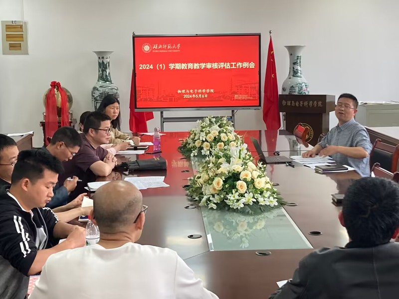 为迎接新一轮本科教育教学审核评估,2024年5月7日下午,物理与电子科学学院在信息大楼10508会议室召开了新一轮本科教育教学审核评估工作学院系部、教研室工作例会。副院长田开坤、系主任王继国、孙四梅、李金星、教研室主任赵豪、何俊康、樊超杰、张雄、曹霞、张仕雄、舒玉坤、张珑、曹庭水和教学办参加会议。会议由田开坤主持。