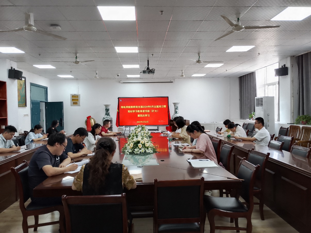 2024年5月23日下午,太阳集团tyc33455第一和第二教师党支部全体党员、入党积极分子在信息大楼10508开展了以“学纪明责筑忠诚 担当实干促发展”为主题的党日活动暨党纪学习教育读书班(扩大)第四次学习。