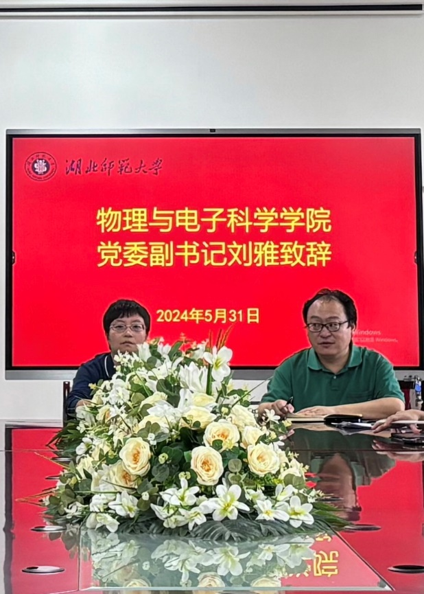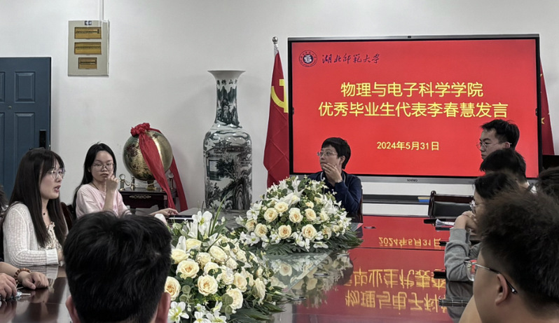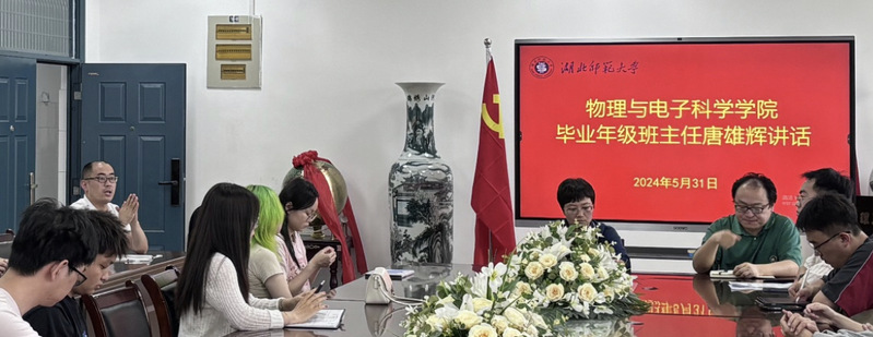5月31日下午,物理与电子科学学院2024届研究生毕业欢送会在信息大楼10508举行。出席会议的有太阳集团tyc33455党委副书记刘雅、副院长单传家、毕业年级班主任唐雄辉、辅导员仇奥以及2024届研究生毕业生。本次会议由刘雅主持。