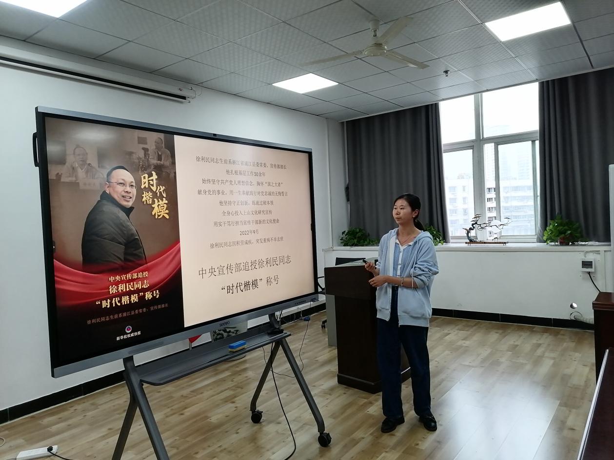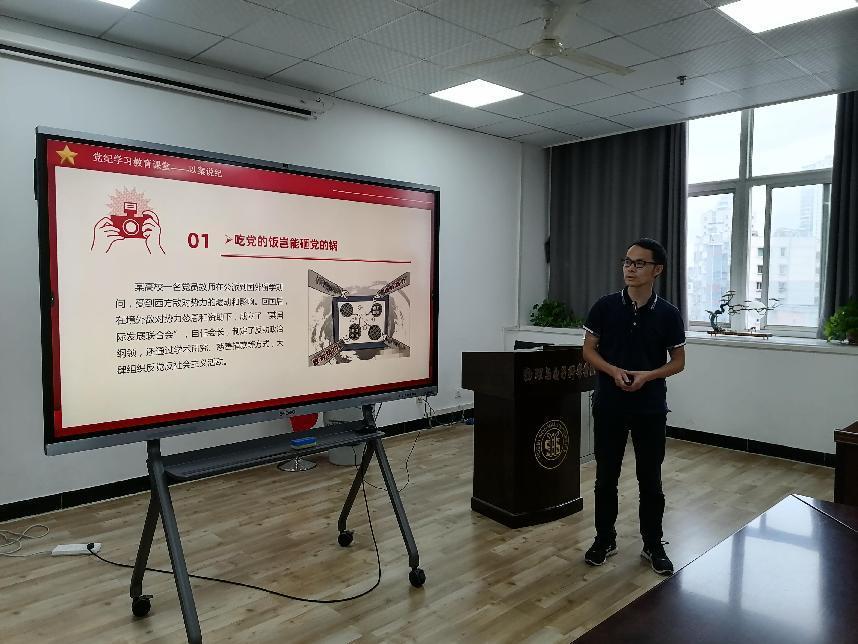 特色活动环节,刘庆杰同志讲党史故事 —《时代楷模徐利民》,盛苏同志讲党纪学习教育专题党课—以案说纪。任洋洋同志围绕学习“中央政治局会议和第十四次集体学习时的重要讲话精神”谈心得体会。