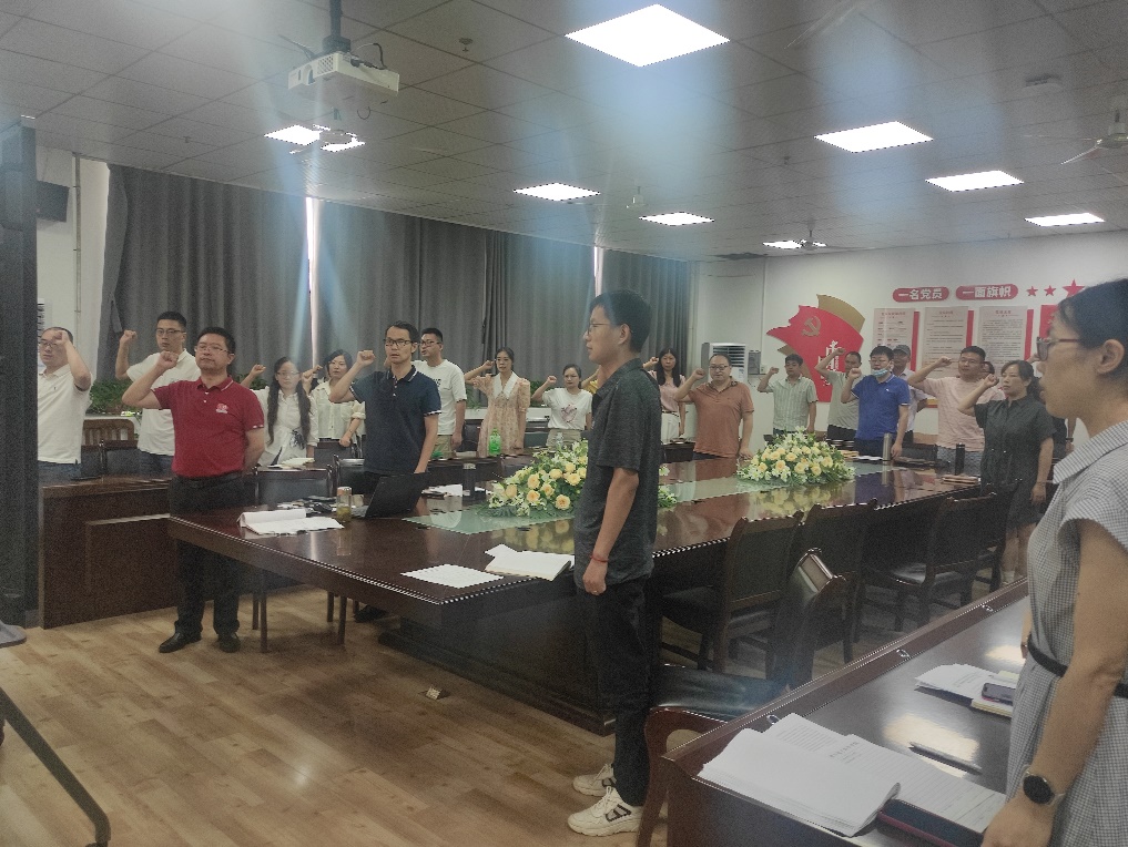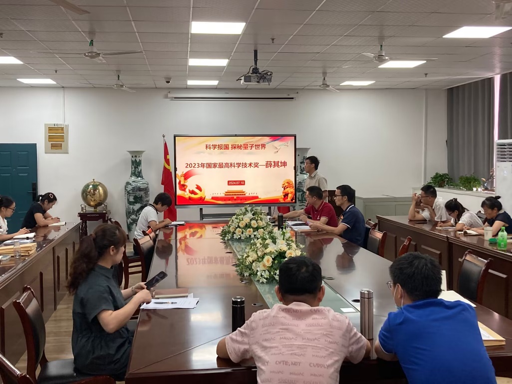 郑瑛、尚俊杰、陈立等同志领学了习近平总书记在青海、宁夏考察时的重要讲话精神、“习近平在中共中央政治局第十五次集体学习时强调:贯彻落实新时代党的建设总要求,进一步健全全面从严治党体系”的重要讲话精神、《习近平关于全面加强党的纪律建设论述摘编》以及中共中央组织部印发《关于在防汛救灾抢险中充分发挥基层党组织战斗堡垒作用和广大党员先锋模范作用的通知》;支部书记盛苏同志给七月份入党的同志过集体政治生日,赠送“政治生日贺卡”;张仕雄同志主讲了以“科学报国 探秘量子世界:2023年国家最高科学技术奖—薛其坤”为主题的优秀党员故事。