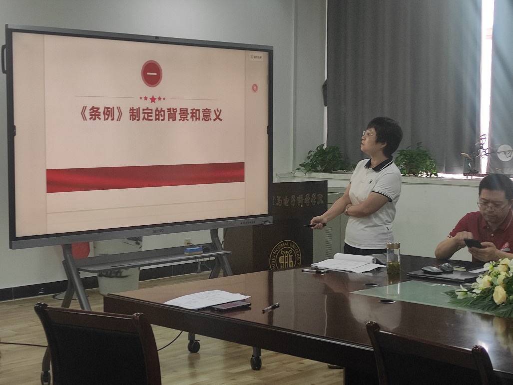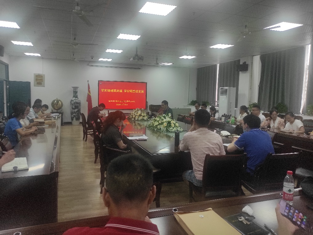 学院副书记刘雅同志主讲了《党史学习教育工作条例》专题学习教育,全体党员围绕活动主题和学习内容进行了交流发言 ,并自主学习了《湖北省平安建设条例》。