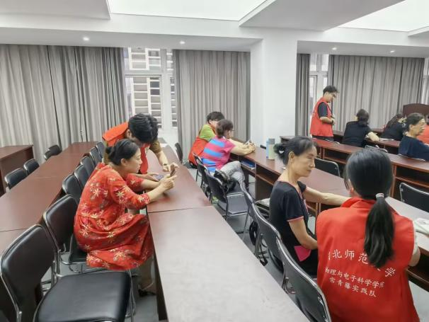 为丰富老年人精神文化生活,进一步改善老年人生活质量,提升老年人幸福感,7月12日,常青藤实践队前往王家里社区开展老年课堂活动。课堂上,主讲人陈卓君为社区的老年人讲解手机的基本用法,从如何拨打电话再到用抖音拍摄短视频,老人们的学习热情高涨,乐在其中。队员们通过一对一的交流、引导,解答了老人们的疑问。队员们纷纷表示,老人们展现出的积极学习态度和充满活力的心态,让他们深受感动和启发。
