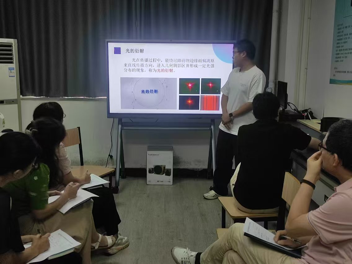 活动现场,教师们在说课环节充分展现了OBE理念的实践。他们从预期学习成果出发,反向设计教学过程。江超老师明确指出:在课程结束后学生能理解衍射基本原理,进一步能运用衍射原理解决问题。基于这些成果,教师应该精心规划教学内容,将复杂的理论知识与实际应用相结合,确保每一个教学环节都能有效支撑学生达成最终的学习成果,例如:为了让学生更好的理解衍射的基本原理,在导入部分可以插入一些衍射教学实验视频;为了学生能够熟悉衍射原理的应用,在衍射的应用部分可以加入科研实验演示(光栅光纤)。刘昌宁老师提出衍射现象以及衍射的应用两个概念的区别,就如何让学生快速而准确掌握衍射的原理发表了自己的看法。