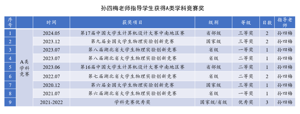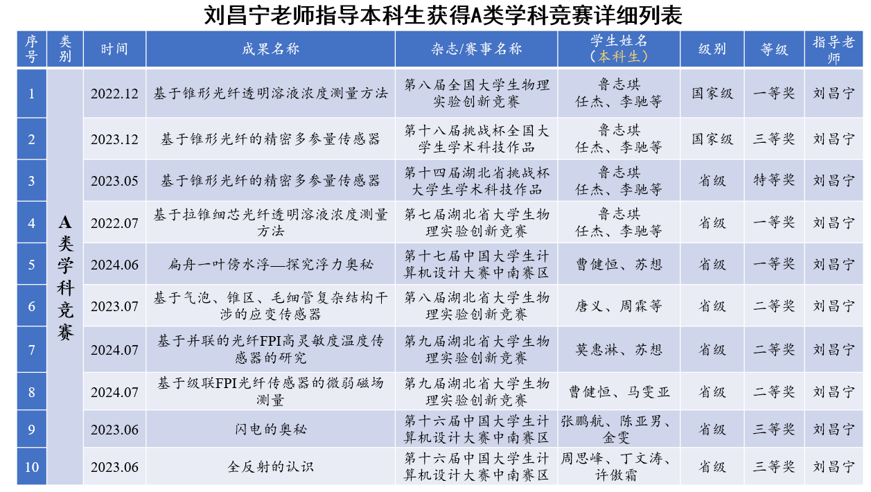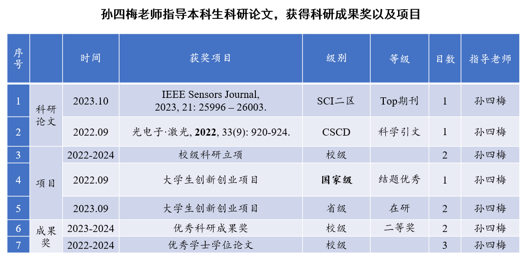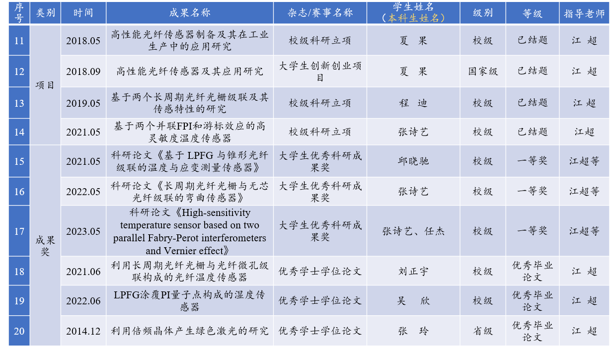 从科研论文,A类竞赛获奖,本科生项目,以及大学生科研成果奖等方面的成果进行详细列表。仅仅以江超教授、孙四梅老师、刘昌宁老师为例。