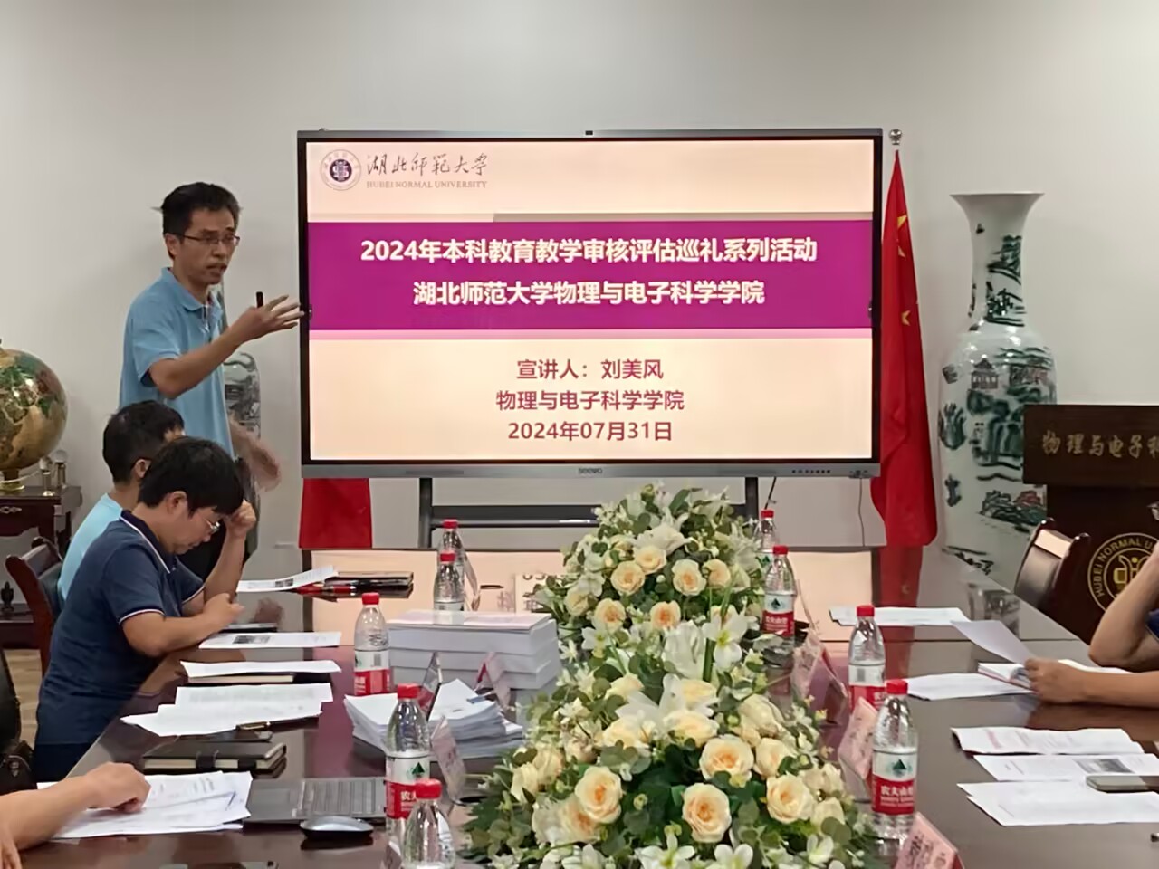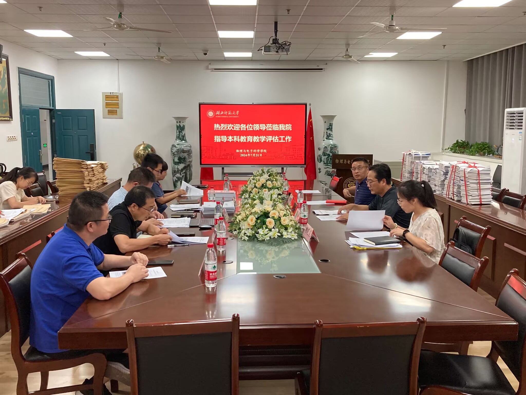 2024年7月31日下午,学校审核评估督导工作组莅临太阳集团tyc33455检查指导审核评估巡礼材料准备工作,参加本次检查工作的有教务处龚波副处长、纪委副书记陈江华、教务处评估中心赖晓霞老师、学院院长刘美风、副院长田开坤、学院党委副书记刘雅及学院审核评估工作专班成员。