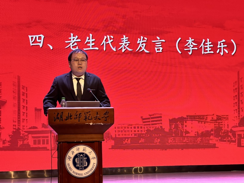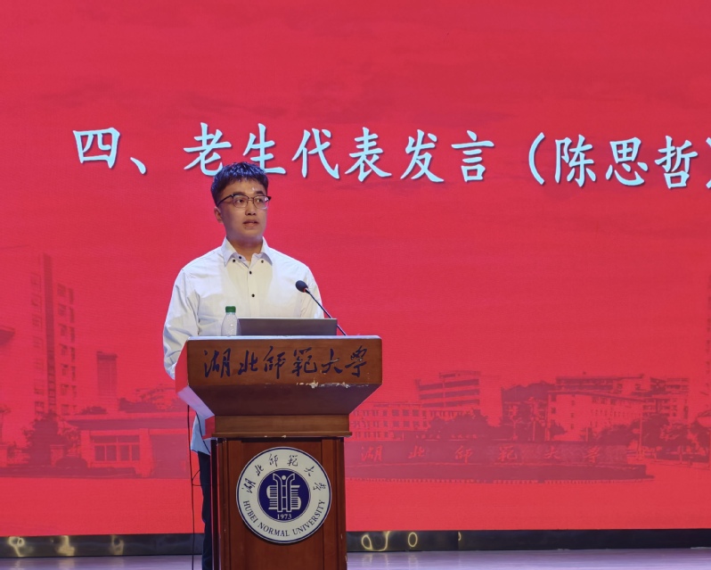 2022级李佳乐、2023级研究生陈思哲作为老生代表发言。他们分享了自己的学习经验和大学生活,勉励新生们坚定自己的理想,坚持拼搏奋斗的精神,追求个人成长和自我提升,努力塑造一个更优秀的自己。