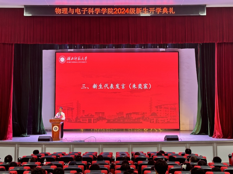 2024级朱奕宸、2024级研究生宁经勇作为新生代表发言。朱奕宸鼓励新生们勇敢踏出舒适圈,积极面对大学生活中的各种挑战。宁经勇提醒新生们在追求学术成就的同时,也要注重个人品质的培养,以实际行动践行学院的教育理念。