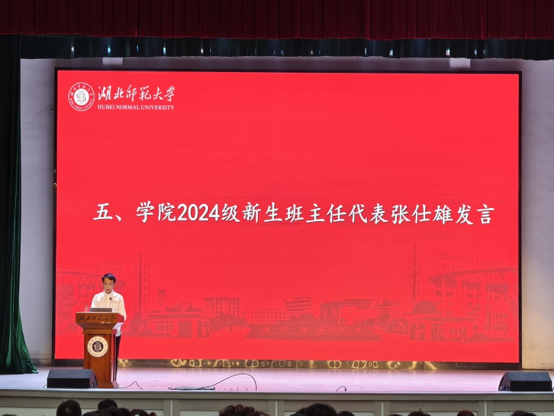 张仕雄作为新生班主任代表进行发言。他对新生们提出三点期望,一是积极自审,通过自我反思来不断调整和完善自我,明确个人目标和方向;二是端正品性,他指出,良好的道德品性是成功的基石,它不仅能帮助新生们在学术上取得成就,更能在未来的职业生涯和社会生活中赢得尊重和信任;三是脚踏实地,专注于当前的学习和生活,一步一个脚印地积累知识和经验。
