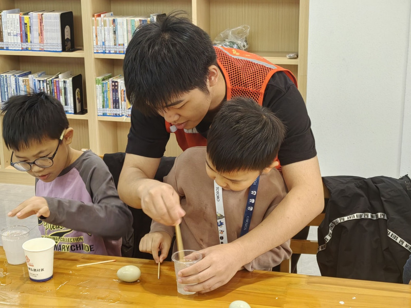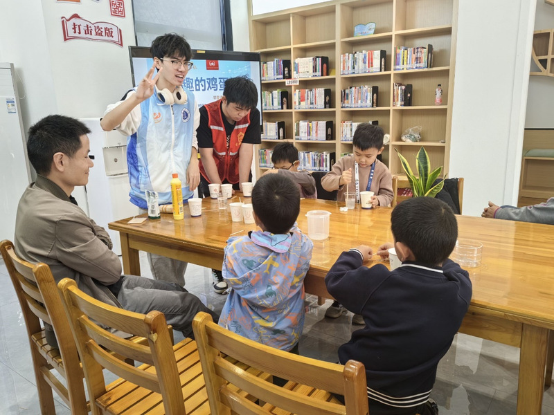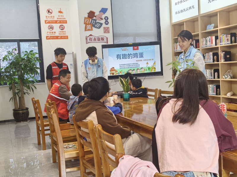 在宏维星都小区的科普现场,孩子们积极参与了两个科学实验。第一个实验是“立鸡蛋”,志愿者在桌上撒上少量盐,使鸡蛋稳稳立起,展示了重心和稳定性的科学原理,孩子们对此现象感到惊奇,纷纷动手尝试。接下来,志愿者将鸡蛋放入清水中,孩子们观察到鸡蛋沉入底部,往水中加盐并搅拌均匀后,鸡蛋浮了起来,志愿者向孩子们讲解了密度的原理,让他们进一步体验了科学的魅力。