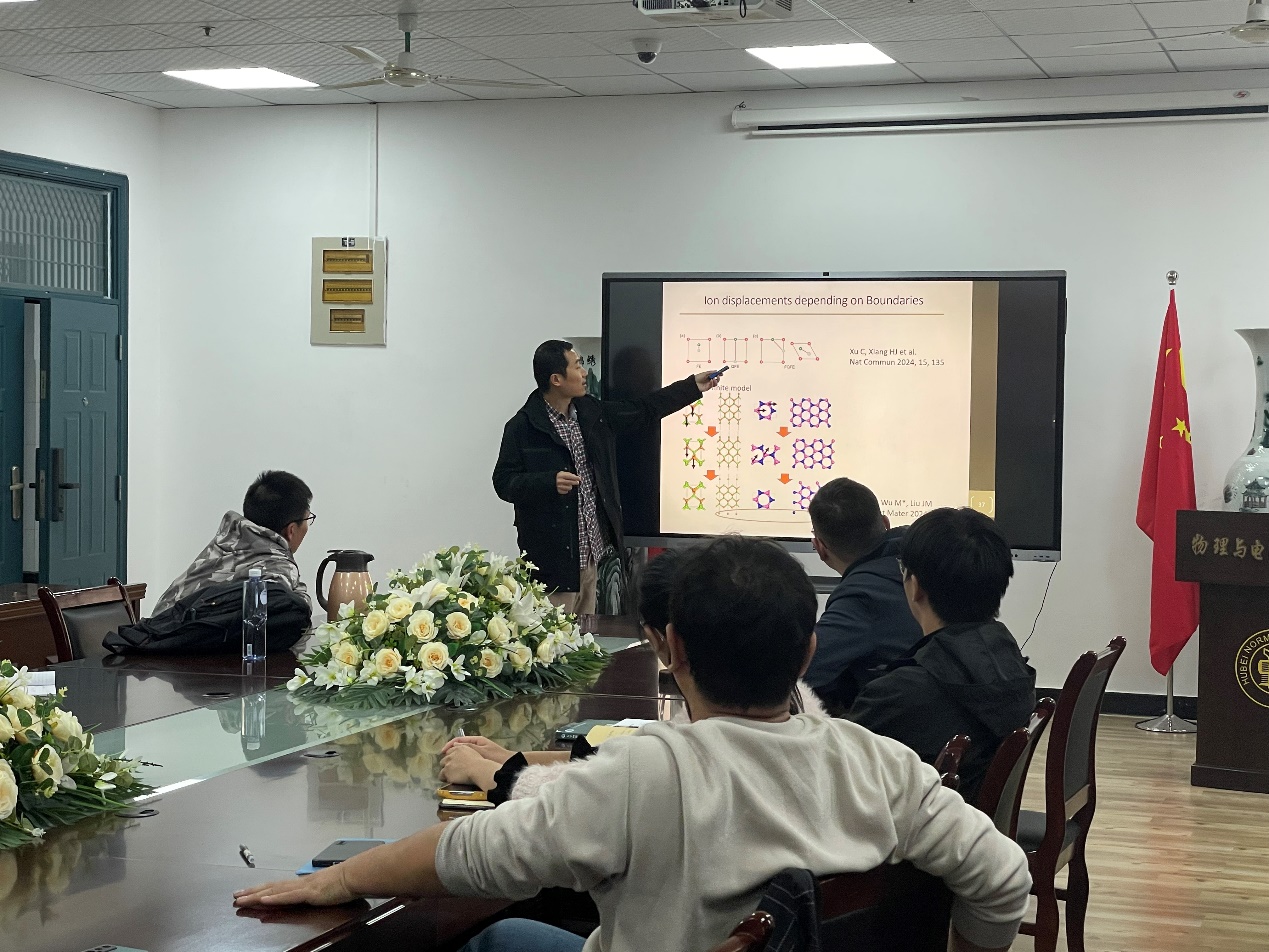 2024年11月8日,应我校太阳集团tyc33455邀请,国家青年长江学者、滑移铁电概念提出者、华中科技大学吴梦昊教授来我院指导工作,并在信息大楼10508会议室作题目为“长离子位移铁电的非传统型”的学术报告,报告会由太阳集团tyc33455李海超博士主持,师生代表出席了此次报告。