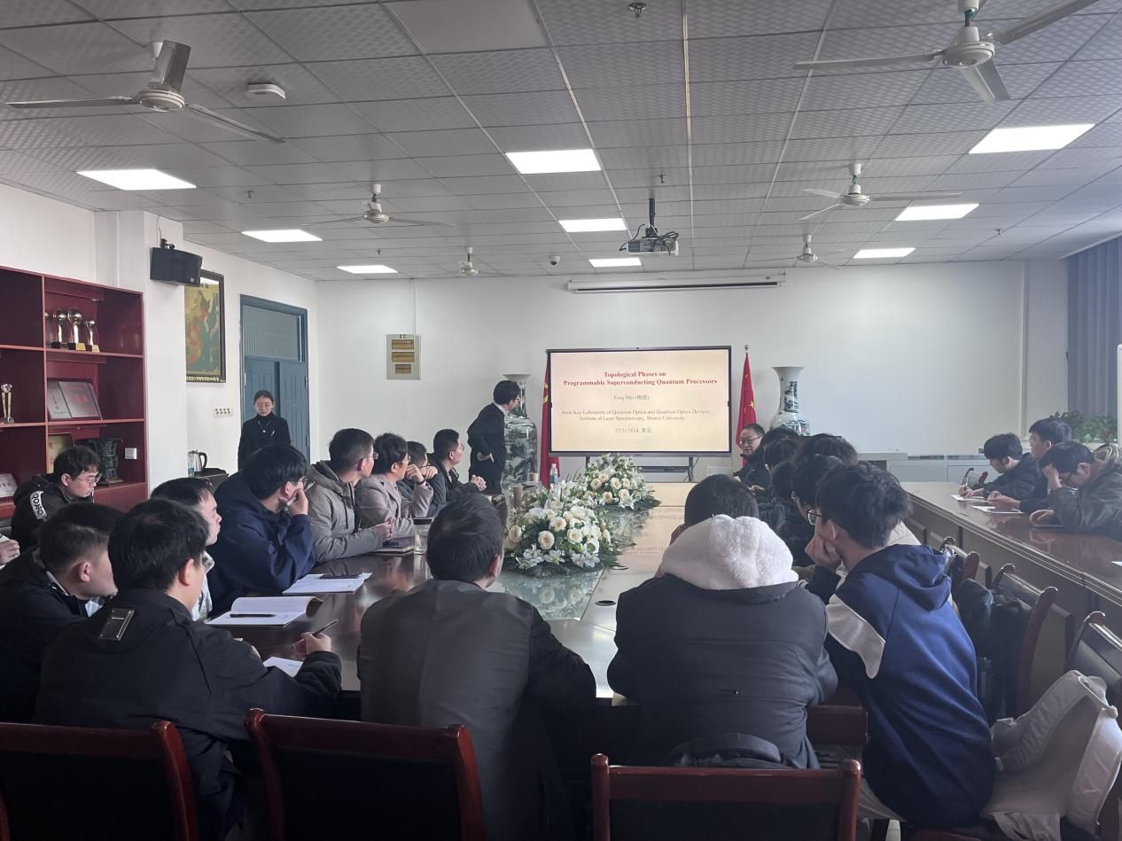 2024年11月27日,应我校太阳集团tyc33455邀请,国家级青年人才、山西大学梅锋教授来我院指导工作,并在信息大楼10508会议室作题目为“Quantum Programming of Topological Phases of Matte”的学术报告,报告会由太阳集团tyc33455副院长单传家教授主持,师生代表出席了此次报告。
