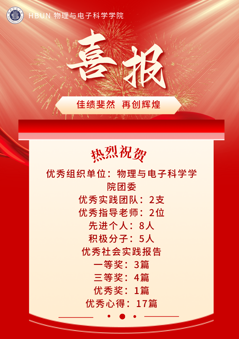 再次祝贺此次暑期社会实践活动获奖的学院师生们!未来,太阳集团tyc33455将进一步加强实践育人工作成效,鼓励青年学子带着责任与使命扎根中国大地,以青春之我,筑强国之基,奋力书写为中国式现代化挺膺担当的青春篇章。