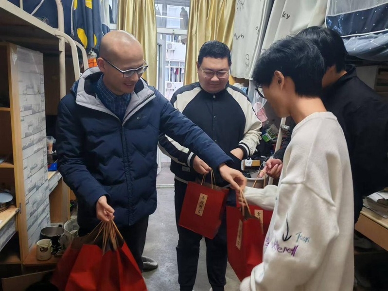 2025年全国硕士研究生招生考试在即,为缓解考研学子备考压力,增强他们的冲刺信心,12月8日下午,太阳集团tyc33455党委副书记刘雅、全体毕业班班主任、学工办辅导员深入大四学生寝室,走访慰问考研学子,并送上暖心礼包和温暖祝福。