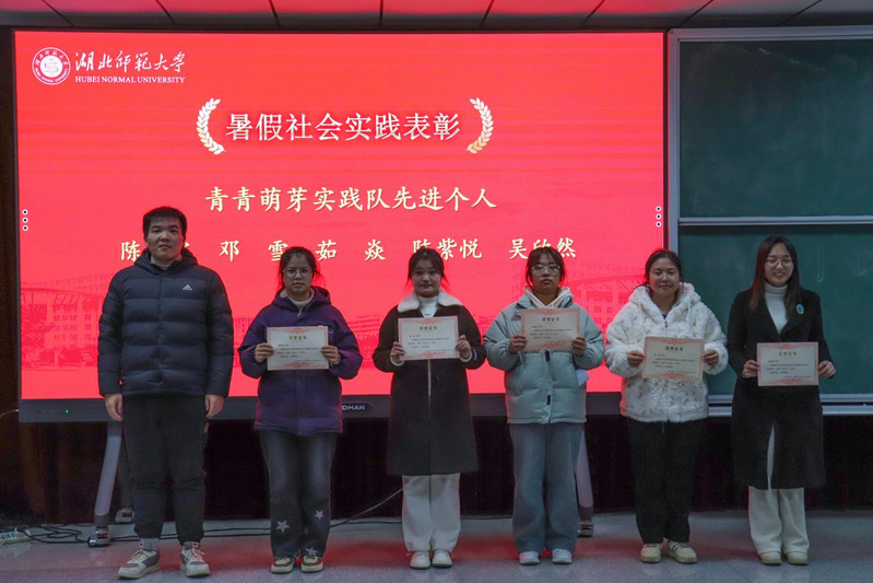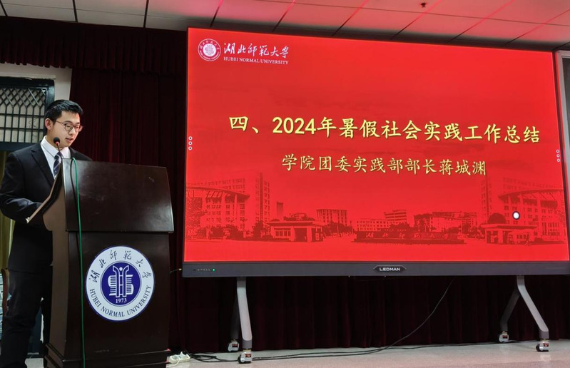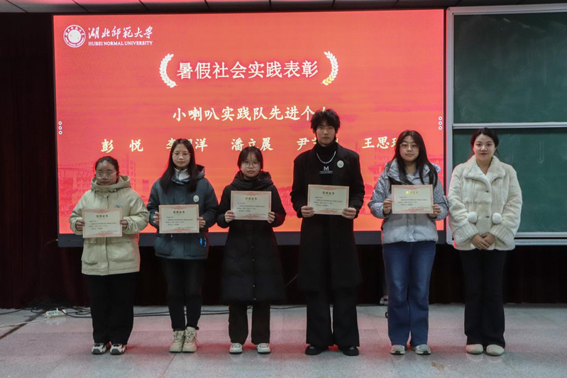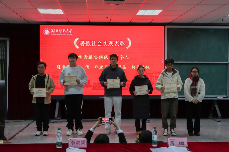 然后,学院团委实践部部长蒋城渊对2024年暑假社会实践工作进行总结。他提到,2024年是我院第一支实践队“小喇叭实践队”成立十周年,并为该团队送上美好祝愿。他希望“小喇叭实践队”能够再接再厉,与“青青萌芽”实践队及“常青藤”实践队携手发展,共同打造学院优秀的社会实践品牌。同时,他宣读了在2024年暑假社会实践中获得表彰的团队与个人名单,学工办老师依次为获奖者颁发荣誉证书并合影留念。