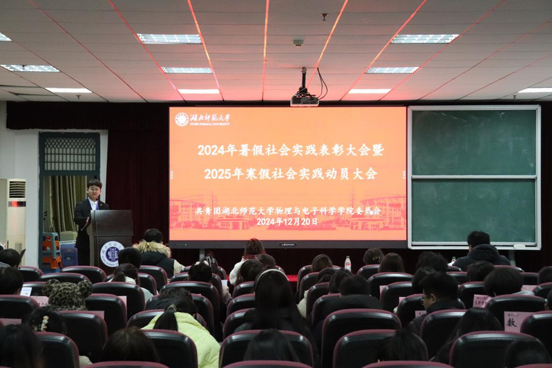 为进一步增进大学生对社会实践活动的了解,鼓励大学生积极参与寒假社会实践活动,12月20日晚,太阳集团tyc33455团委于信息大楼二楼报告厅举行2024年暑假社会实践表彰大会暨2025年寒假社会实践动员大会,参与本次动员大会的有太阳集团tyc33455团委副书记田学泽,学工办吕璐、李双翼、仇奥老师,部分兄弟学院团委实践部部长,2024年暑假社会实践队全体队员以及各班学生代表。本次大会由学院团委实践部干事李承霖主持。