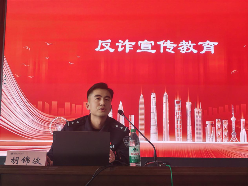 2月18日下午,我院特邀沈家营派出所民警胡锦波进行反诈宣传教育,21、22级学生参加活动。胡锦波表示,电信诈骗近年来呈高发态势,且手段不断翻新,让不少学生上当受骗。他结合实际,针对电信诈骗的常见种类、特点和防范方法进行详细讲解,有效帮助学生增强“防炸反诈”意识和提高自我保护能力。