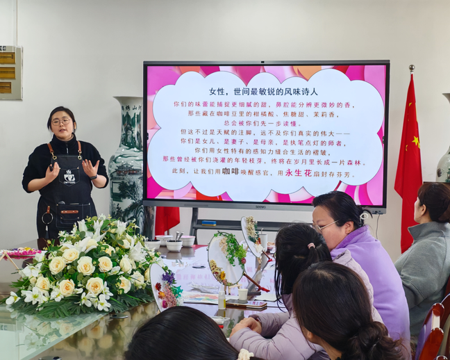 紧接着,一场咖啡文化小课堂带领大家走进咖啡的奇妙世界。余筱筱老师深入浅出地讲解了咖啡基础知识,从咖啡豆的起源到种类,再到品鉴礼仪,让在座女士们对咖啡有了更深入的了解。大家专注聆听,现场氛围热烈。