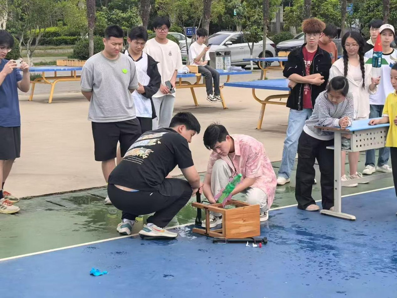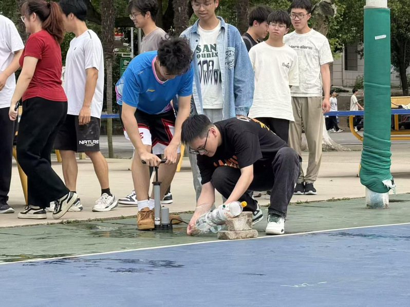 本次水火箭大赛不仅让同学们将课堂上学到的物理知识运用到了实际操作中,也为同学们提供了一个展示自我、相互学习的平台,进一步激发了大家对科学探索的热情。相信在未来的日子里,物电学院的学子们将继续保持这份对科学的热爱,勇于探索,敢于创新,在科技的天空中飞得更高、更远!