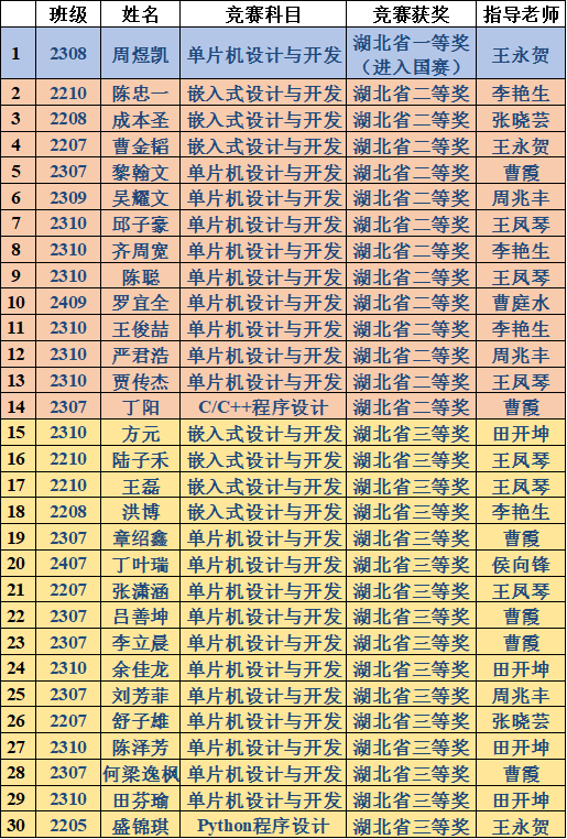 4月30日,由工业和信息化部人才交流中心主办的2025年第十六届蓝桥杯全国软件和信息技术大赛省赛成绩公布,我院共30位同学获奖,其中2308班周煜凯同学获得湖北省一等奖并进入国赛,陈忠一等13名同学获得湖北省二等奖,方元等16名同学获得湖北省三等奖。