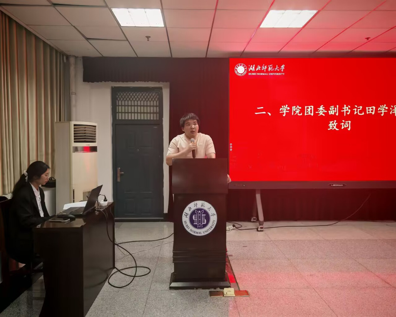 大会在庄严激昂的团歌声中拉开帷幕,全体与会人员起立,齐唱团歌,歌声嘹亮,展现出青年学子昂扬向上的精神风貌。随后,田学泽老师发表致辞。田老师充分肯定了同学们在寒假社会实践中展现出的责任担当与创新精神,强调社会实践是青年学子成长成才的重要课堂,鼓励同学们在即将到来的暑假实践中积极探索、勇于实践,在社会大课堂中受教育、长才干、作贡献。