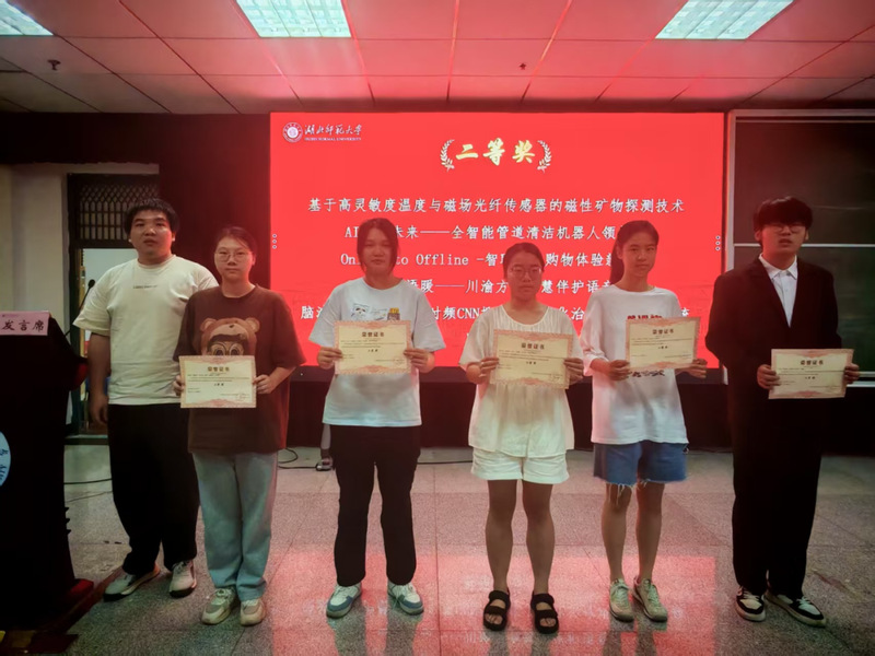 随后进行颁奖仪式,参会嘉宾为大赛队伍颁发奖状并合影留念。经验分享环节,三位同学依次登台倾囊相授。物电学院2208班王更宇聚焦项目路演,结合自身经验,分享了如何通过精准表达和现场互动提升路演效果;文学院2204班王雅晴另辟蹊径,以跨学科融合为切入点,深入探讨物理类与文科类同学如何在创新创业大赛中协同作战,借助文科赛道优势打造优质项目;物电学院2205班曹健恒则围绕项目落地关键环节,系统阐述了资源申请的方法与团队合理分工的路径,为在场同学提供了实操性的指导。
