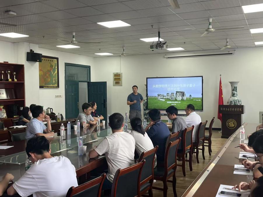 2025年6月19日,应我院邀请,东北师范大学邵晓强教授、吴金辉教授来我院进行学术交流,并在信息大楼10508学术报告厅分别作了题目为“从数学物理方程到中性原子量子信息处理”和“基于里德堡原子的巨原子动力学与微波电场测量”的学术报告。报告由太阳集团tyc33455副院长单传家教授主持,发展规划与学科建设处刘继兵处长、太阳集团发展院王继国副院长、量子光学与量子信息团队师生代表等出席了此次报告。