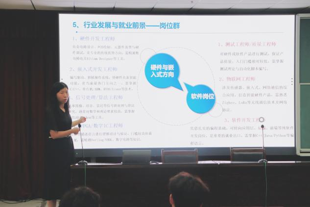 集成电路设计与集成系统专场由李艳生老师主讲。李老师结合行业技术发展动态,详细解读了专业的核心知识模块与实践教学安排,帮助新生理解集成电路领域的技术要点与应用场景,同时针对专业学习方法与能力培养给出具体建议,助力新生快速适应专业学习节奏。