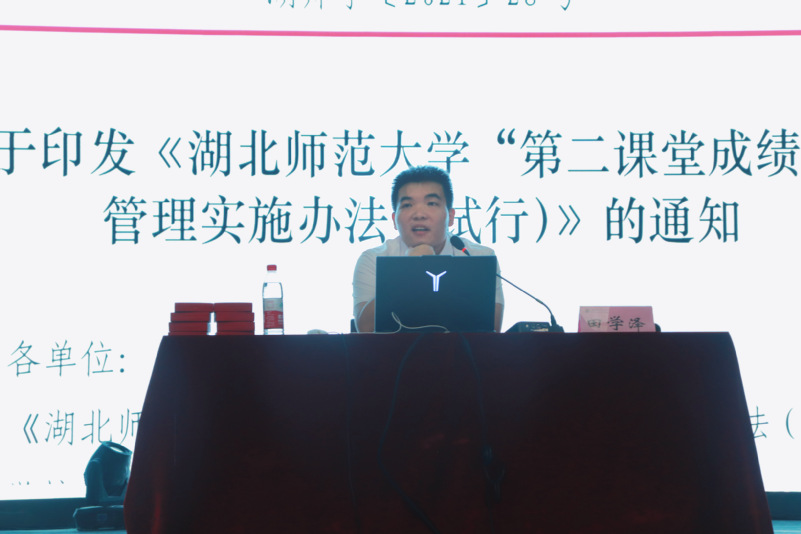 会上,田学泽首先围绕第二课堂积分管理与应用展开讲解,明确全日制本科生需在第三学年结束前修满40积分,并着重强调该积分是学生综合素质测评、评奖评优等工作的重要参考依据。随后,他详细介绍了积分涵盖的六大类别及综合素质测评与积分的具体计算方法,进一步强调第二课堂积分与毕业条件的关联,助力新生清晰掌握第二课堂相关要求。
