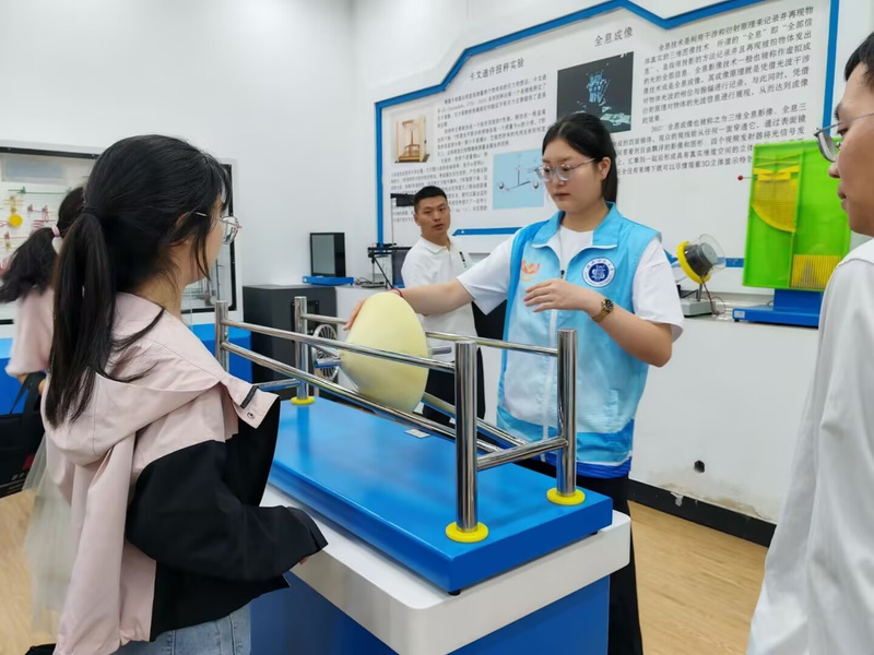 9月21日下午,太阳成集团tyc33455cc寻物之理科普社接待“国培计划”初中化学学员,组织开展校园文化观摩活动。科普社讲解员团队聚焦生动有趣的科学实验,为来访学员打造了一场“知识+趣味”的沉浸式科普盛宴。