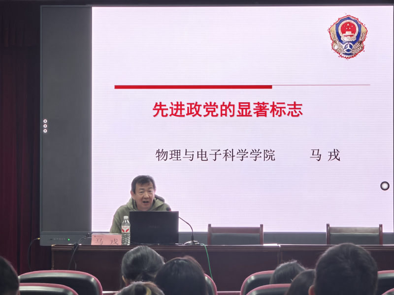 开班仪式结束后,马戎以《先进政党的显著标志》为题,为学员讲授了首场专题党课,为大家深化对党的认识、筑牢思想根基奠定了坚实基础。
