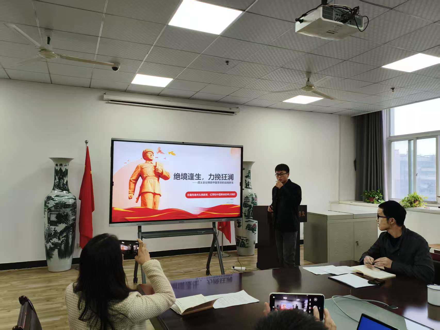 为强化党员的政治归属感与组织凝聚力,支部书记盛苏同志给10月份入党的同志过集体政治生日,赠送“政治生日贺卡”。随后,徐信同志以“绝境逢生,力挽狂澜”为题,为全体党员讲述遵义会议的党史故事。他详细梳理了遵义会议召开的历史背景、主要内容与重大意义,着重强调:在党和红军面临生死存亡的危急关头,遵义会议纠正了“左”倾错误军事路线,确立了毛泽东同志在党中央和红军的领导地位,成为中国革命从挫折走向胜利的伟大转折点,铸就了中国革命的战略新生。报告结束后,全体党员围绕党史学习与长征精神传承展开热烈讨论,党员代表李可同志结合长征胜利89周年纪念活动,分享了自己的学习心得。他谈到,长征精神是不怕牺牲、坚韧不拔、团结奋进的精神象征,新时代党员应从长征历史中汲取攻坚克难的勇气,将长征精神融入教育教学与科研工作中,以实际行动践行初心使命。