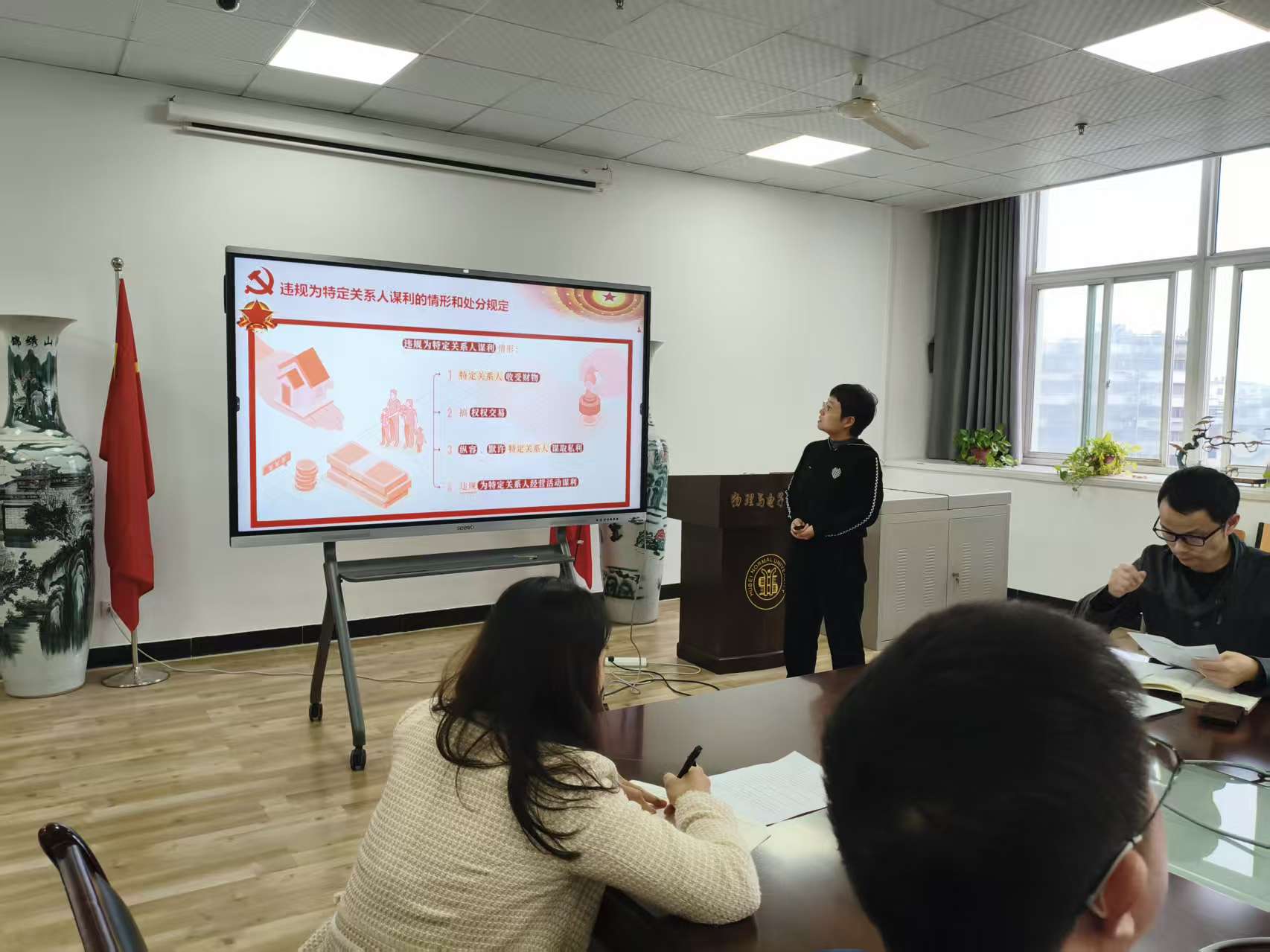 纪律教育是此次党日活动的重要环节。物电学院党委副书记刘雅同志结合典型案例,详细列举了“违规为特定关系人谋利”的常见情形,并对照《中国共产党纪律处分条例》等规定,明确了此类行为的纪律后果,强调全体党员必须严守纪律红线,时刻保持对“微腐败”的警惕,做到廉洁从教、廉洁修身。