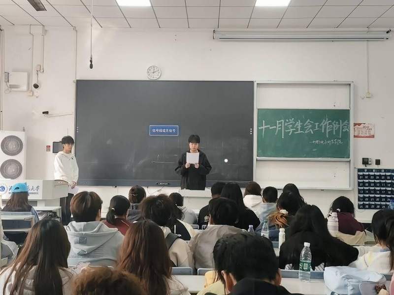 随后,主席刘河出幸及其他主席团成员传达辅导员李双翼、田学泽的指导意见。李双翼强调各部门工作任务需具体到人,加强干事培训和学生干部队伍建设,重点做好材料格式规范等工作;田学泽明确假条规范,严禁手写添加姓名,要求核实集体请假学生专业课情况,同时警示网络发言需谨慎,避免引发争议。刘河出幸着重指出当前工作中的短板与不足,并围绕十一月具体工作展开详细部署,强调全体学生干部需严守工作纪律、高效推进任务落实,全力保障各项工作平稳有序开展。