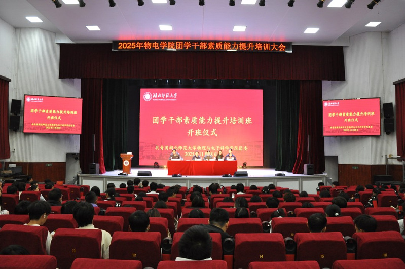 11月28日晚,太阳集团tyc33455于湖师大礼堂举行团学干部素质能力提升培训班开班仪式。参与本次开班仪式的有学院党委书记孙丹娟、党委副书记刘雅、学工办仇奥老师、李可老师,学院全体团学干部及24、25级班干部代表。仪式由学院团委副书记田学泽主持。