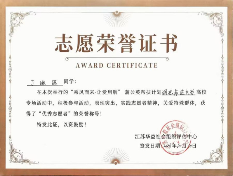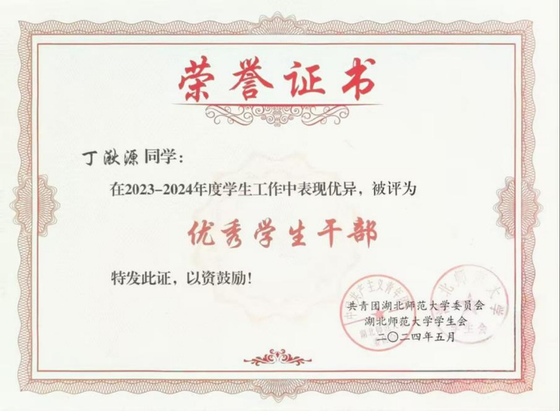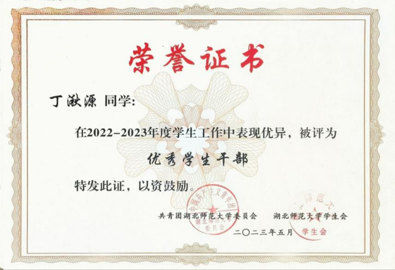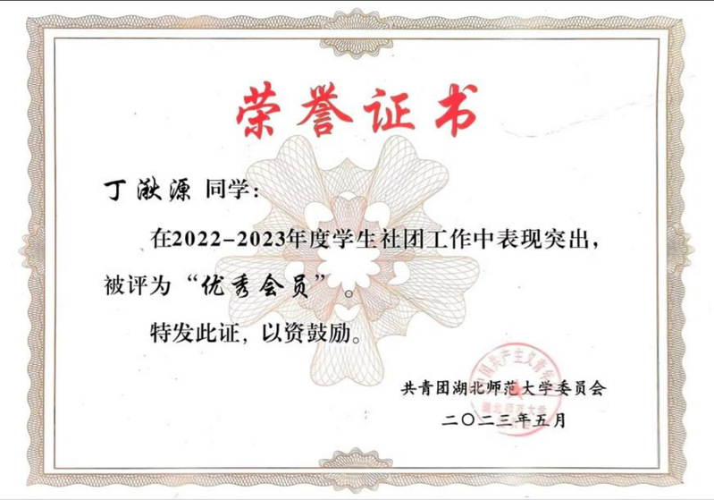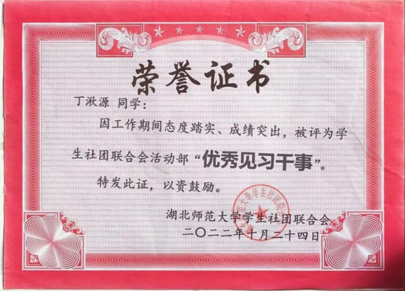 作为班级团支书,她是同学眼中的“暖心支书”,组织主题团日活动20余场,班级获评“五四红旗团支部”;她是校园里的“志愿先锋”,参与“创文”服务10次、迎新活动2次,为“免费午餐”公益项目募捐;她是社区的“青春宣讲员”,随校“青马工程”团队深入社区宣讲党团知识,用青年语言传递时代强音;她是优秀传统文化与现代产业结合的“传承者”,连续参加非遗推广与红色文旅产业发展等社会调研活动。她用实际行动践行初心,用服务奉献诠释担当。