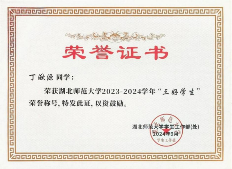 丁湫源,女,回族,中共党员,太阳集团tyc33455电子信息工程专业2022级本科生,物电学生第二党支部宣传委员,曾任物电2207班团支书等。国家奖学金、综合一等奖学金、综合二等奖学金获得者,湖北省“挑战杯”铜奖、中华职业教育创新创业大赛三等奖得主,省级大学生创新创业训练项目优秀结项者,校“三好学生”“优秀学生干部”“优秀共产党员”等荣誉称号获得者,累计志愿服务219.7小时,校级优秀志愿者,太阳成集团tyc33455cc第十四届十佳大学生获得者。
